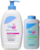 Details: SebaMed Baby Body Lotion, For All Skin Types, 400 ml Seamed baby lotion has a ph of 5. 5 And contain natural lipids. Conventional baby lotions have ph greater 7 and contains parabens and propylene glycol which can cause burning sensation and skin irritation. Seamed baby lotion contains 7 percent natural lipids plus lecithin plus sorbitol ensures long lasting hydration. Sebamed baby lotion has easy spread ability without leaving an oily film. Made in Germany gentle protection for delicate baby skin moisturizing and emollient complex safeguard against dryness allantoin makes the skin smooth and supple chamomile soothes the skin rapidly absorbed without greasy residue7 percent lipid compound oil in water emulsion supports the natural lipid balance pleasant botanical fragrance ideal from 7 day onwards clinically proven 16 percent increase in skin hydration within 3 weeks. Sebamed Baby Powder, 200g Micronized form of tio2 reduces the effect of rubbing and chafing. Absorbs extra moisture from baby's skin to help skin feel comfortable. Extra soft formula with Allentown helps in protecting baby's delicate skin against irritation. Olive oil present in seamed baby powder soothes and protects baby's skin from dryness. Made in Germany olive oil soothes and protects the baby's skin from dryness allantoin makes the skin soft and smooth pleasant botanical fragrance ideal from one month onwards0 percent irritant reactions and almost 0 percent allergic reactions.