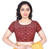 This Black Blouse has Cotton Silk Fabric, Round Neck with piping on neckline & sleeves. It has Embroidered Bamboo and Owl Motif design on back . You can team it up with a solid colour saree.Care: Dry Wash ; do not bleach; dry in shade; medium to hot iron.