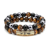 2Pcs Triple Protection Bracelet,Natural Tigers Eye Black Obsidian and Hematite 8 MM Beads Bracelet for Men Women Gift, Healing Crystal Bracelet Bring Luck and Prosperity and Happiness (Rose Red) Rose Red