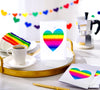 • This third birthday greeting card features a rainbow character in a bright and colorful, z-fold design with white glitter and red foil embellishments