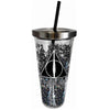 Spoontiques - Harry Potter Tumbler - Hogwarts Crest Foil Cup with Straw - 20 oz - Acrylic -Black